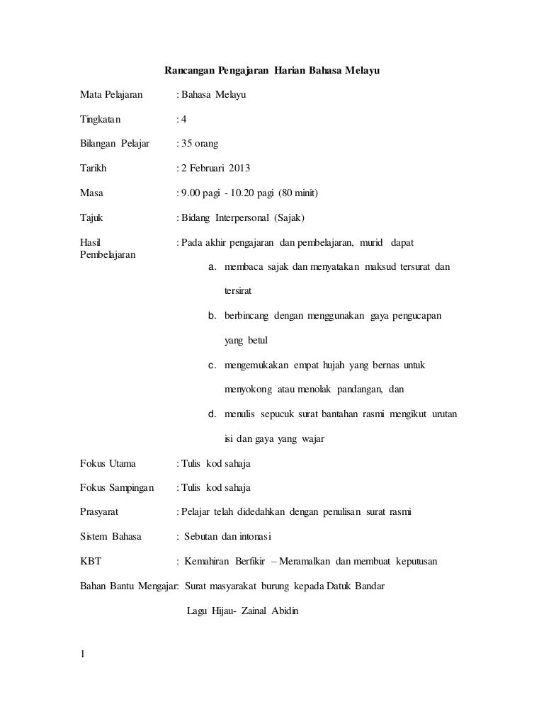 Contoh Rancangan Pengajaran Harian Bahasa Melayu Kssr T1 Pdf